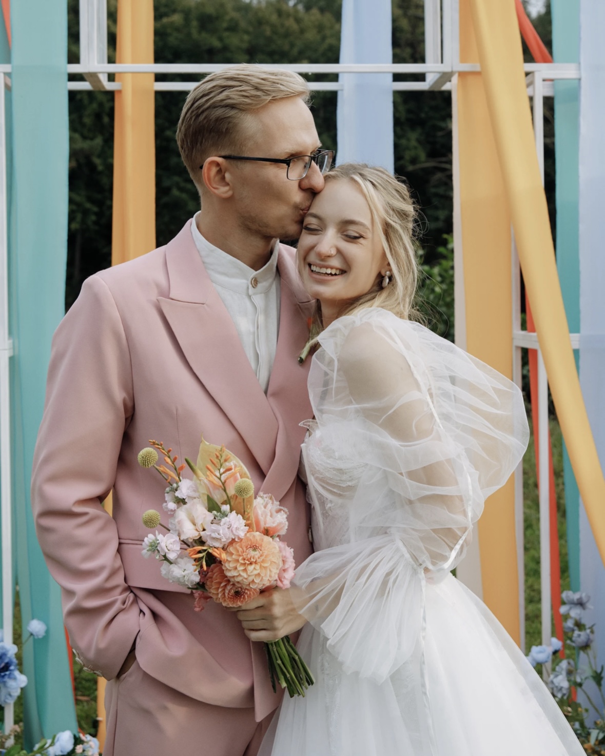 А уж образы жениха и невесты, а также «спецэффекты» в виде мыльных пузырей и конфетти дополнили этот романтичный и нежный образ! Но об этом чуть позже.